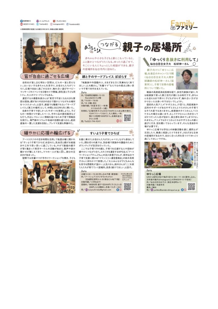 【掲載情報】河北ウィークリーせんだいに「すいよう子育てひろば」が掲載されました。
